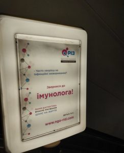 До Всесвітнього тижня первинних імунодефіцитів на 4 станціях метрополітену міста Києві протягом 2 місяців розміщені сіті-лайти про ознаки ПІД (2021 рік)